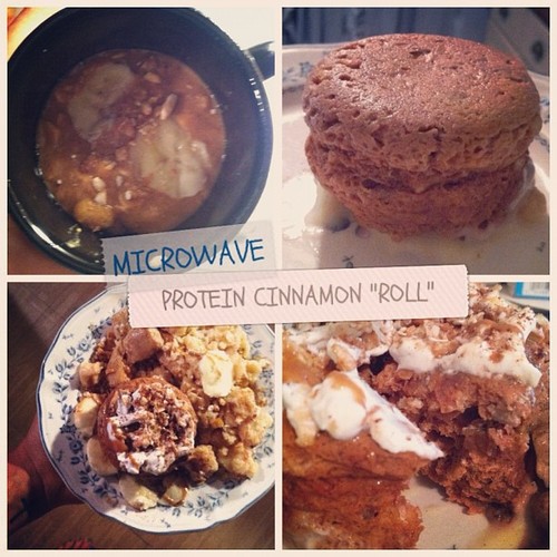 10/14/12 - Dessert/Snack: microwave protein cinnamon roll with maple Greek yogurt frosting & homemade almond milk pumpkin pie ice cream! I also had my usual side of a sliced apple and pear.